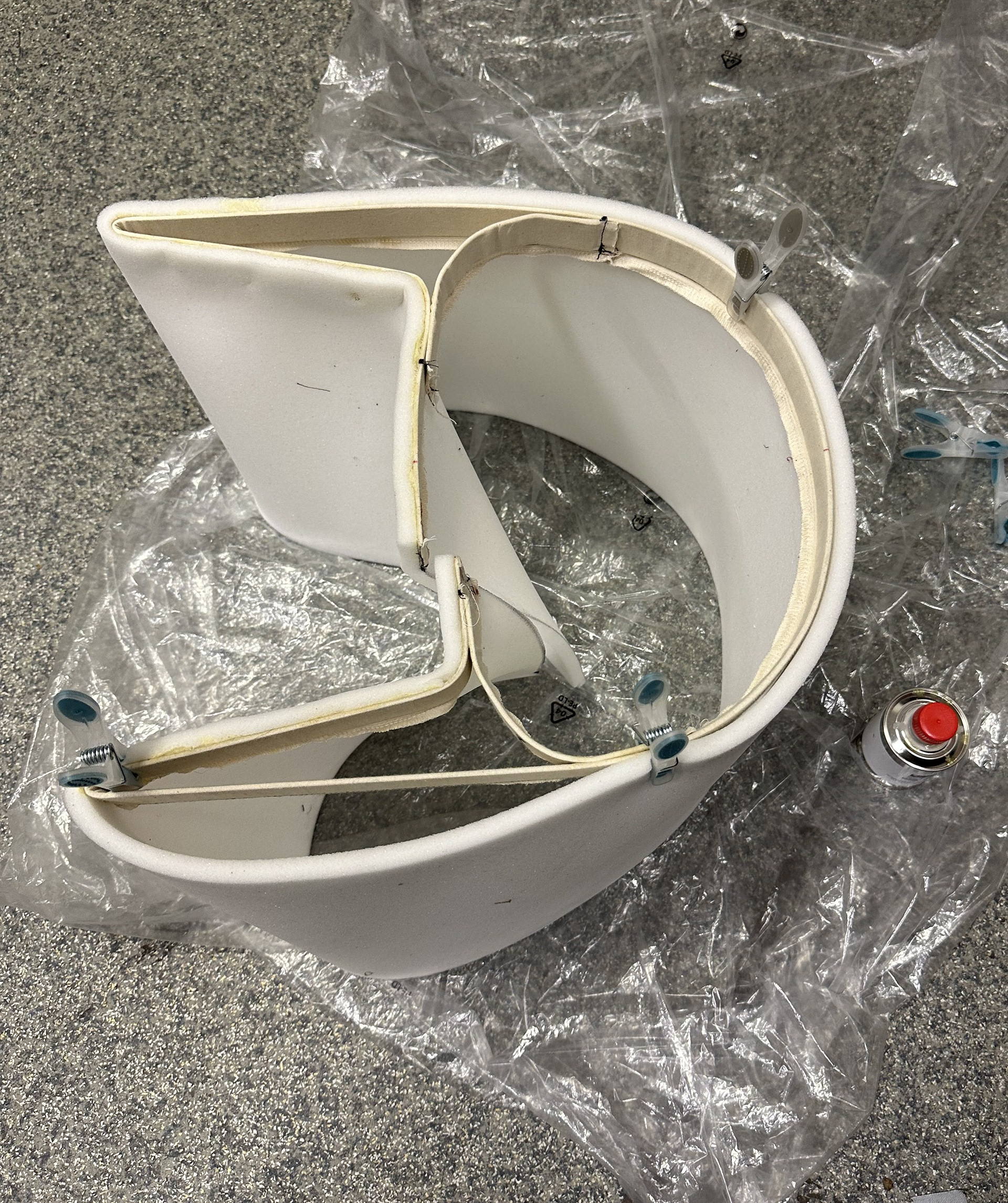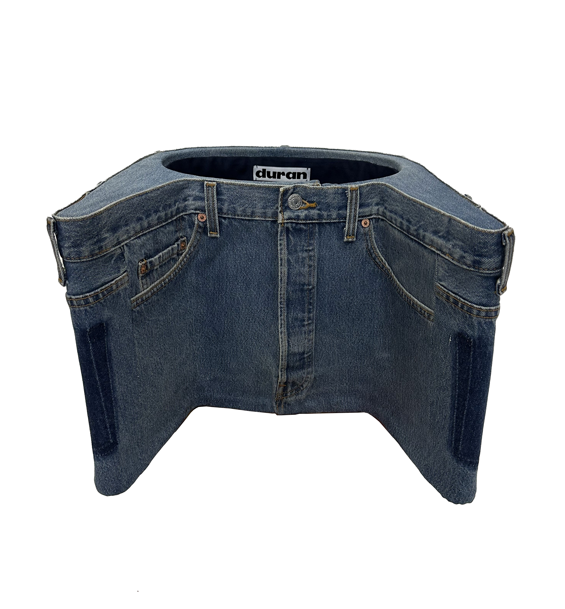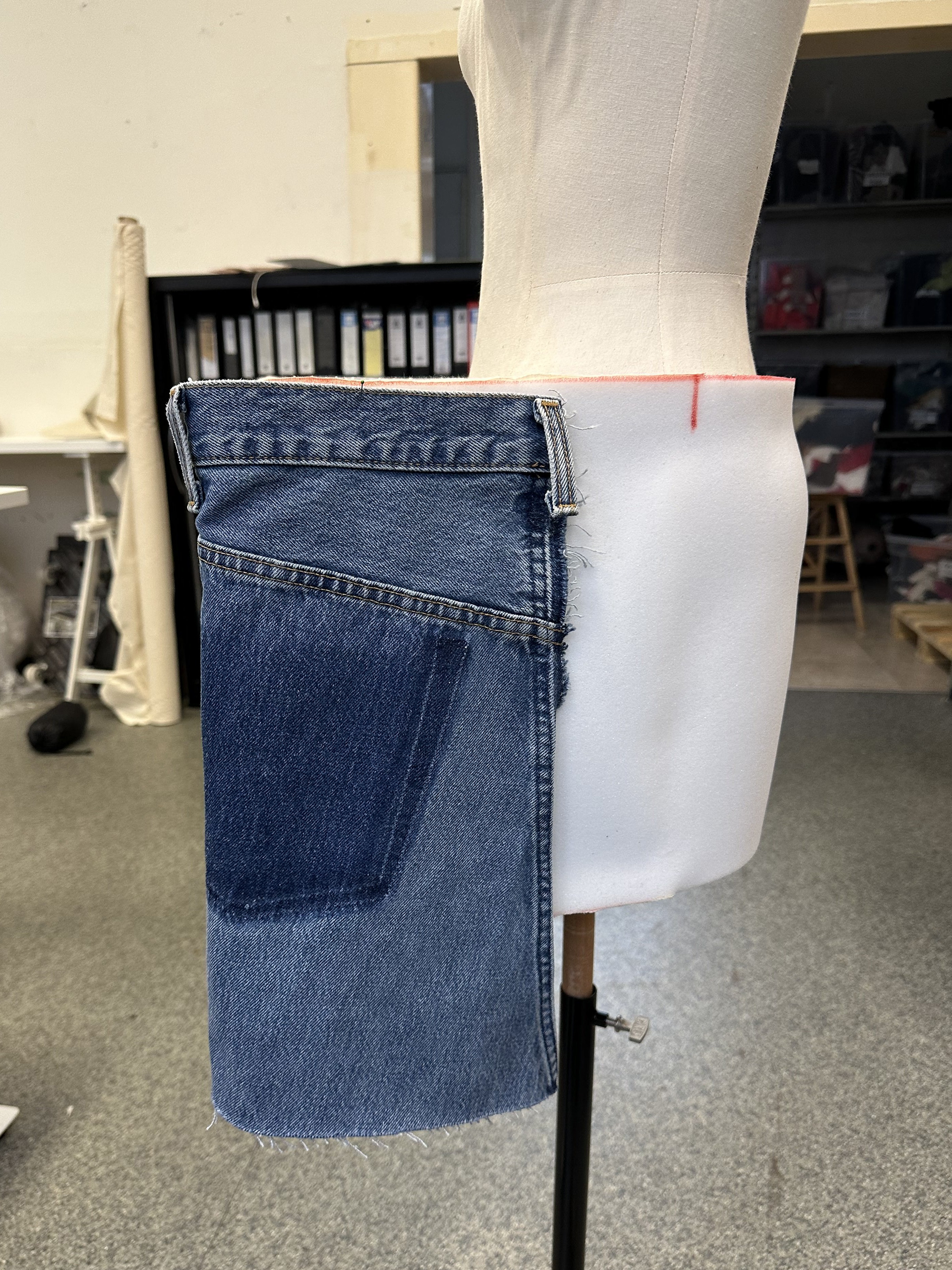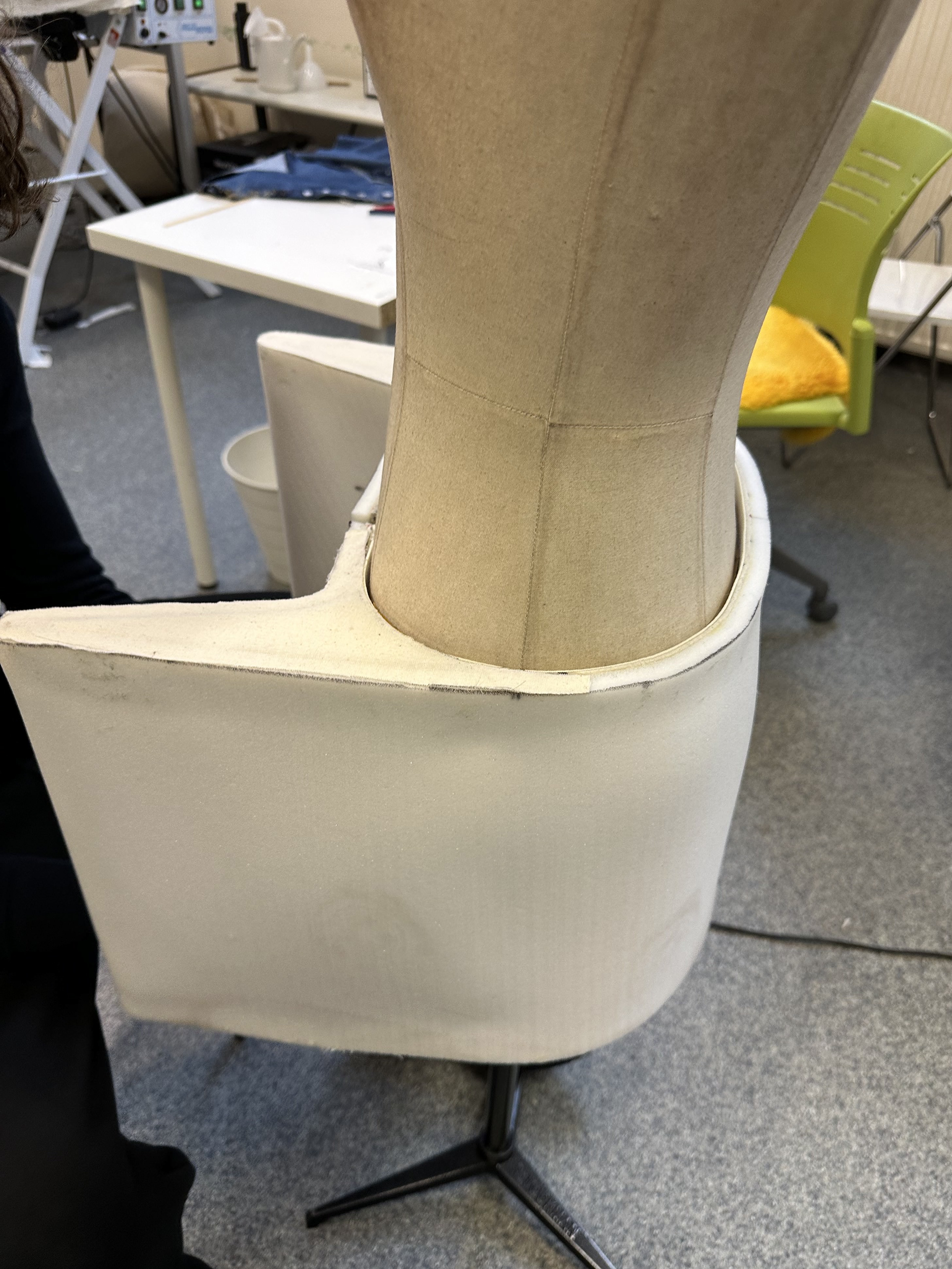 The process expanded my knowledge towards material and technique far beyond fabrics. Bending metal, shaping foam and covering the whole thing in denim with hand stitches took quite some time, but I ended up really satisfied with the results.