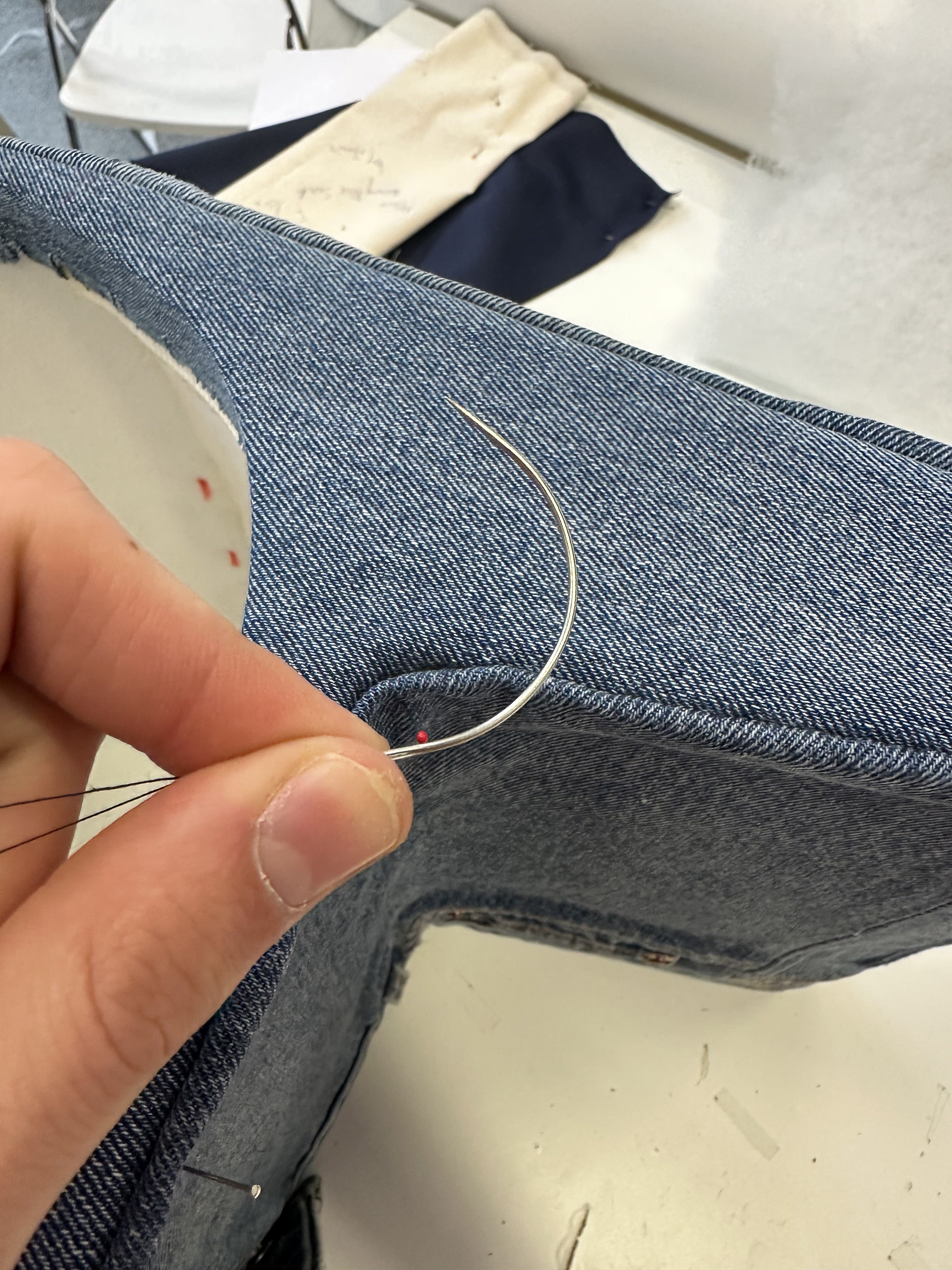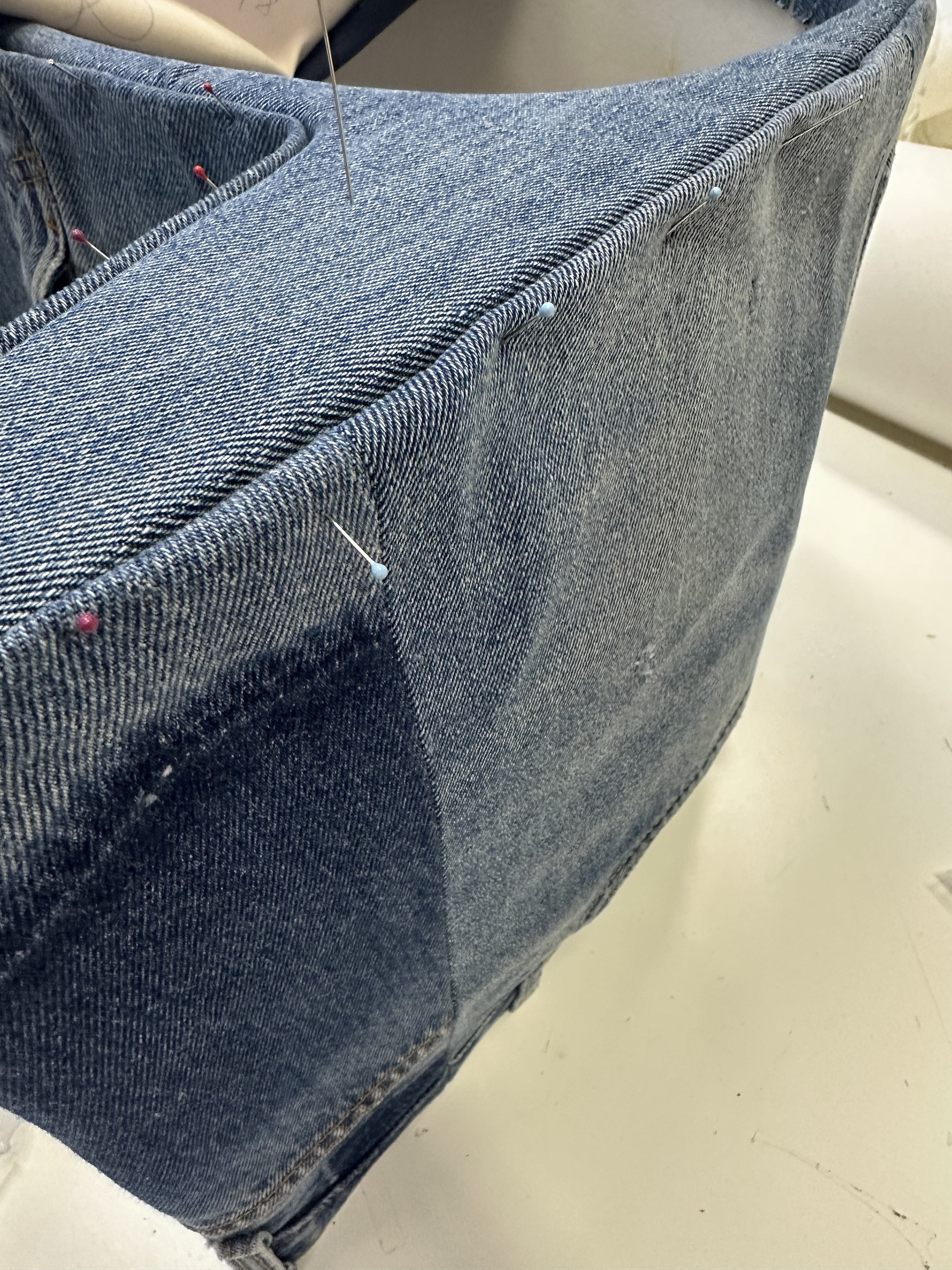After PFW, we got some orders like this denim-horn-skirt. I am very proud of this piece, since it became my responsibility to refine the workflow and the construction for the skirt. I ended up supervising the production of 3 more skirts.