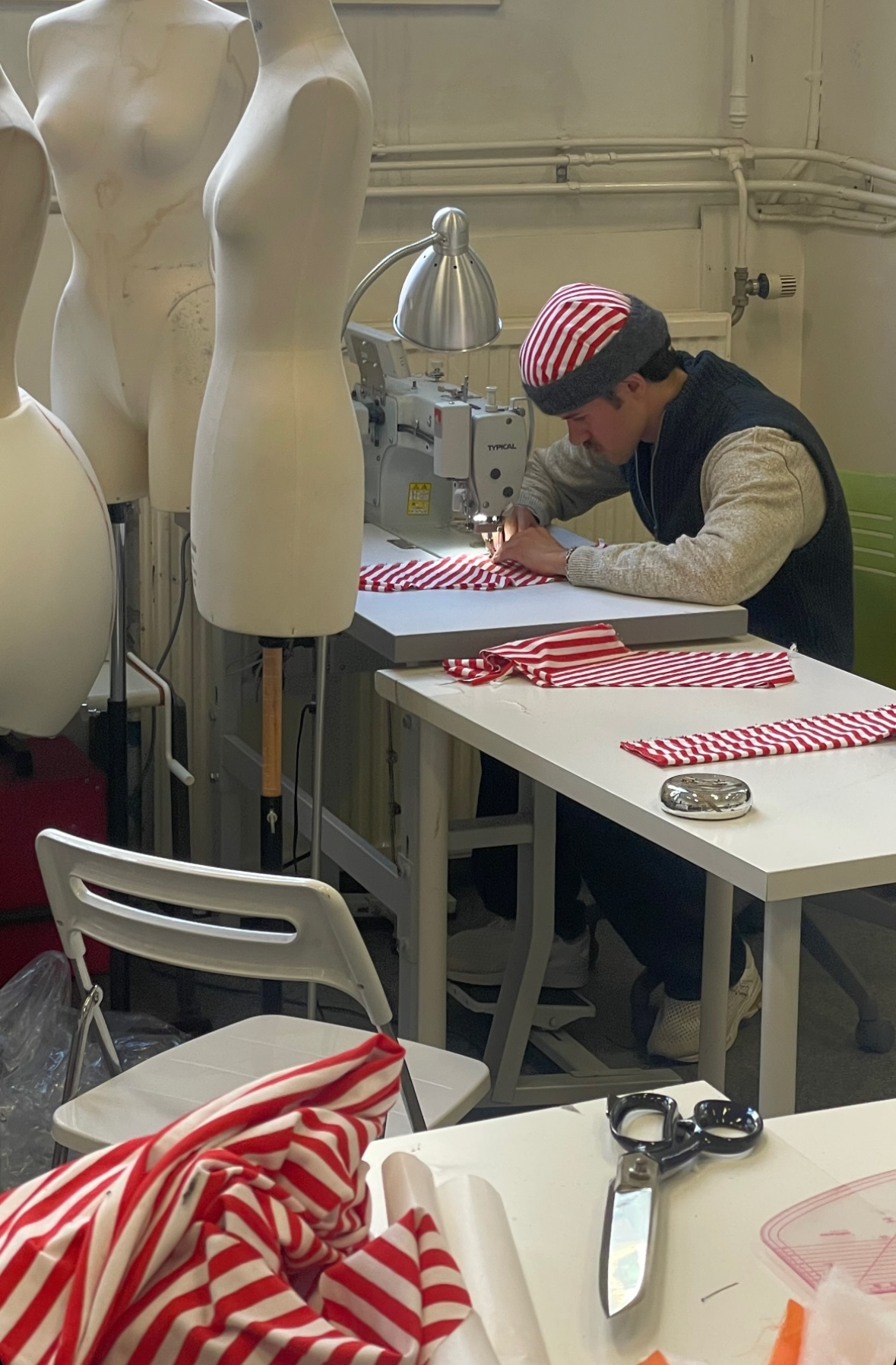 I was mainly responsible for everything with stripes. I worked a lot with jersey material and matching the stripes exactly to each other.