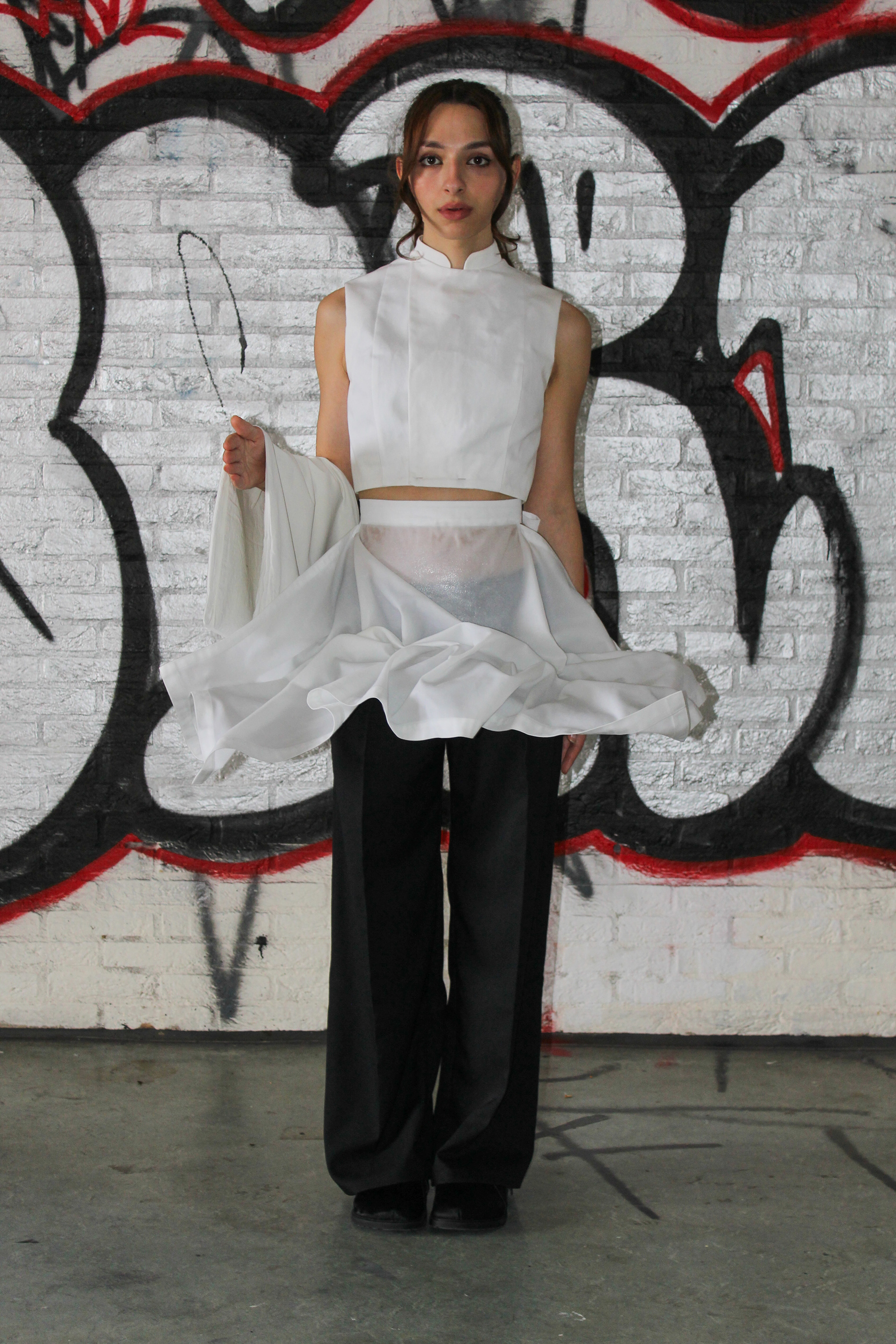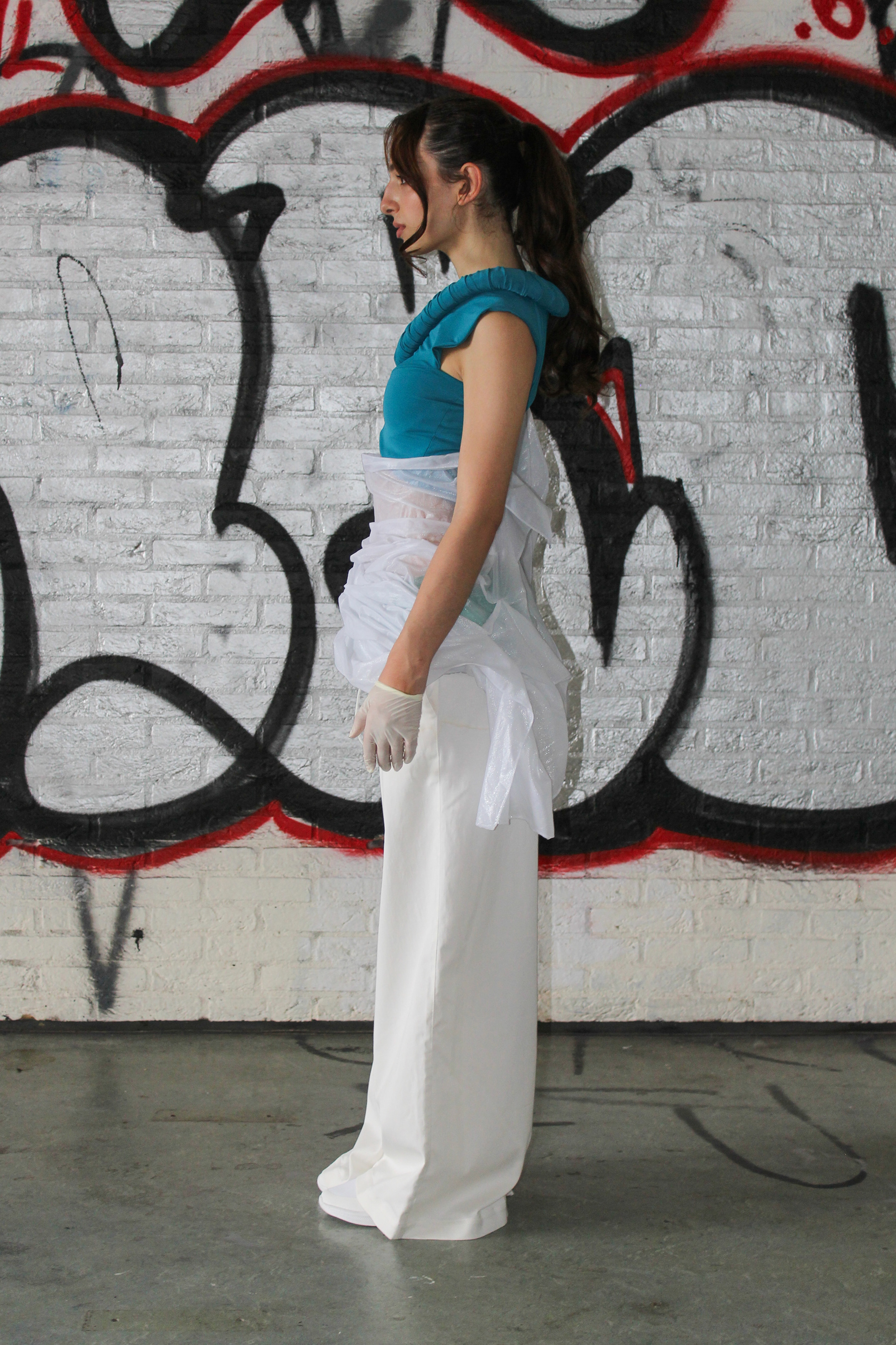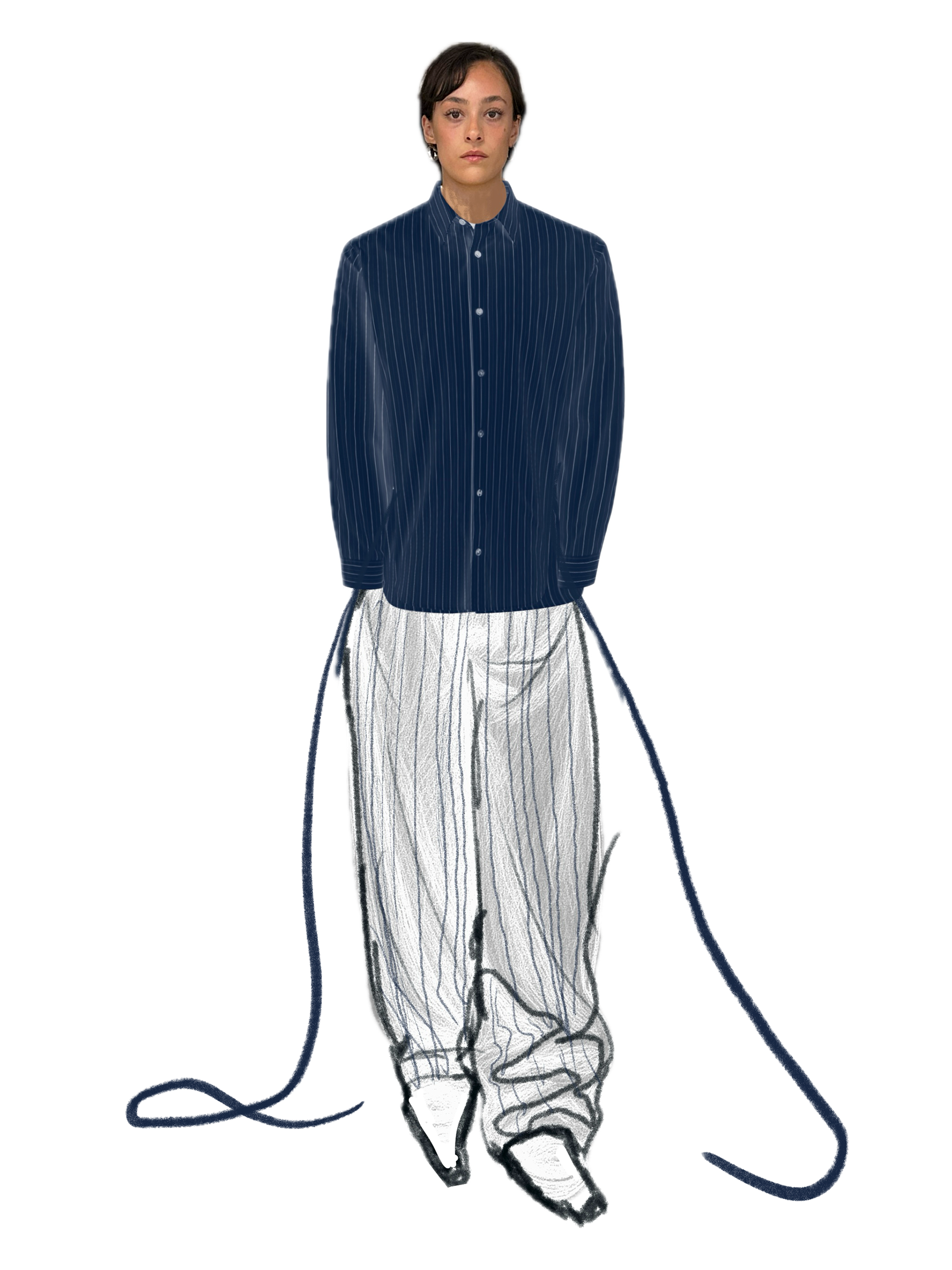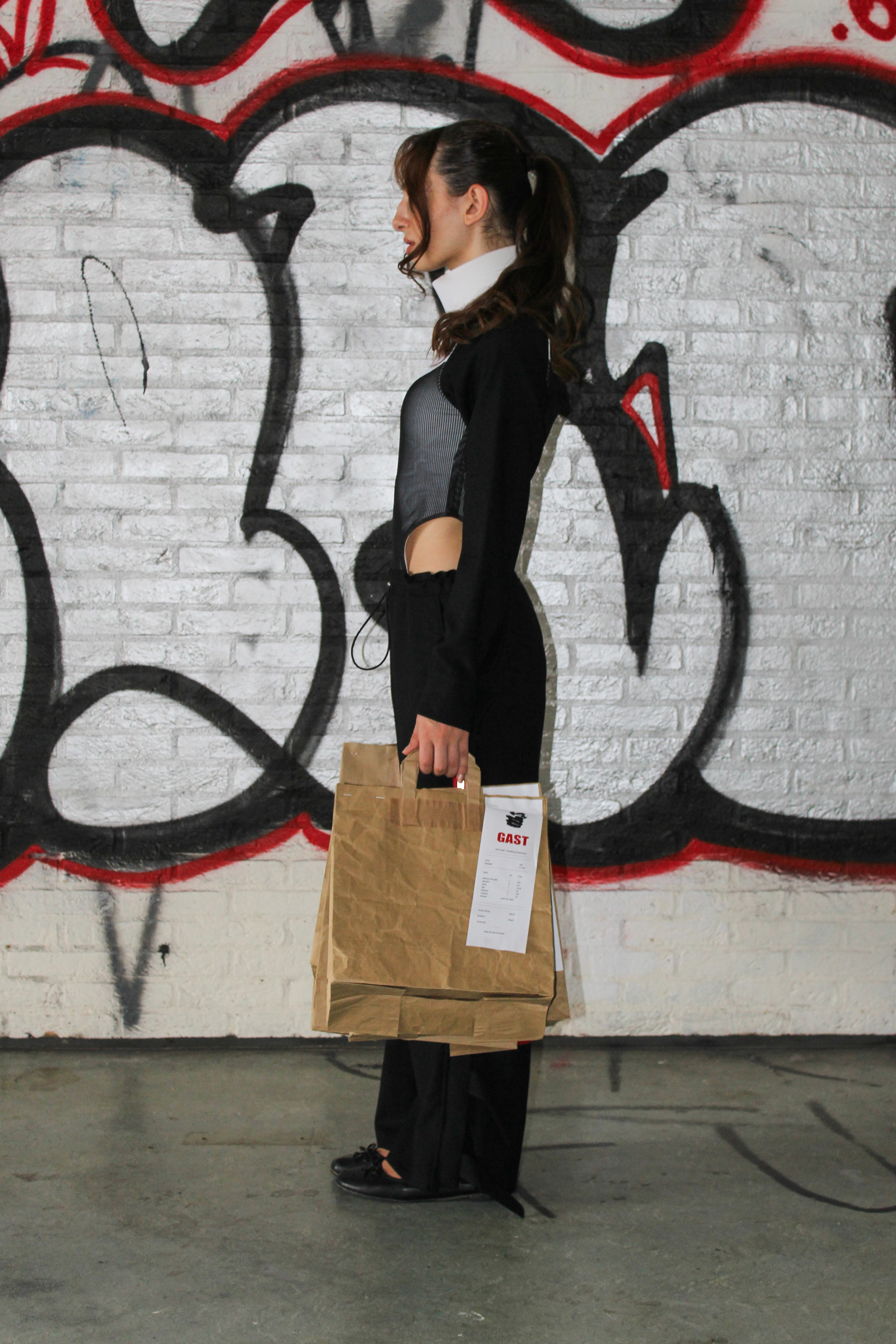 This collection is a story – an homage to immigration, labour, and unappreciated value: the value of work, family, and identity. It reclaims garments tied to financial instability and struggle, reimagining them as symbols of strength and self-expression. “Es ist wie es ist” reflects the unspoken resilience of specific communities – people who carry on despite hardship, who dress with dignity even when dignity is denied. It is a tribute to the overlooked, to the labour behind the surface, and to the everyday pride of simply continuing.