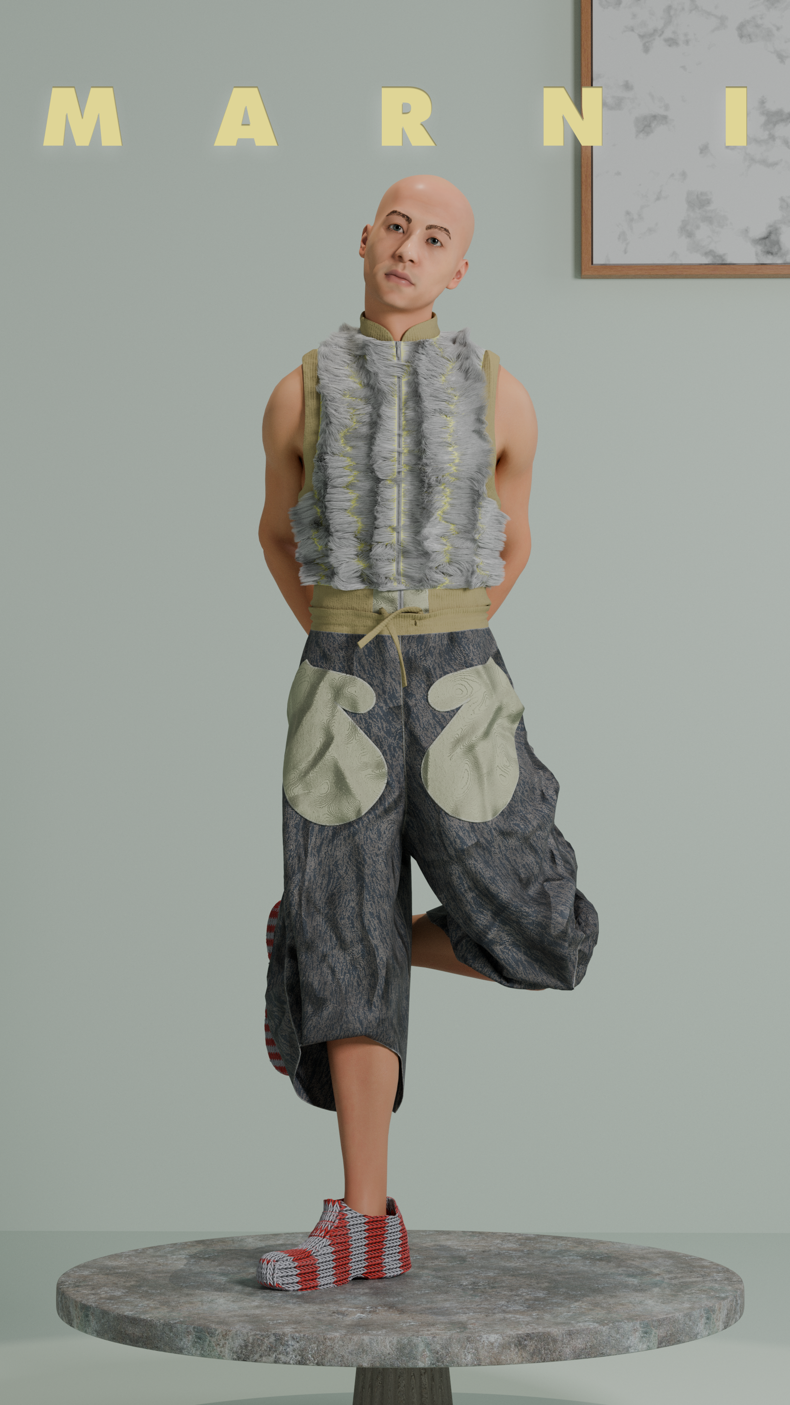 HYPERCRAFT is a minor in which the student dives into the world of 3D Design and gets taught how to design, texture and animate a small collection for a brand. In this case, MARNI.