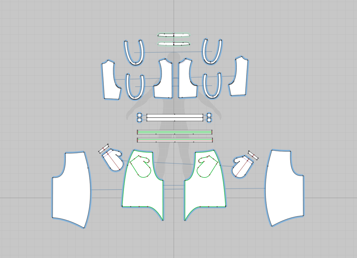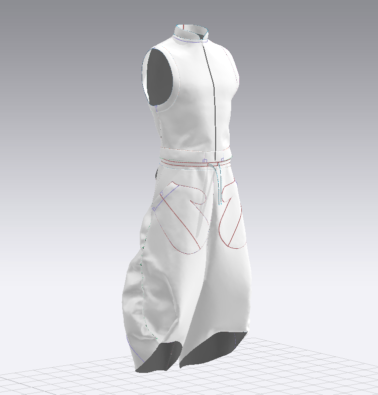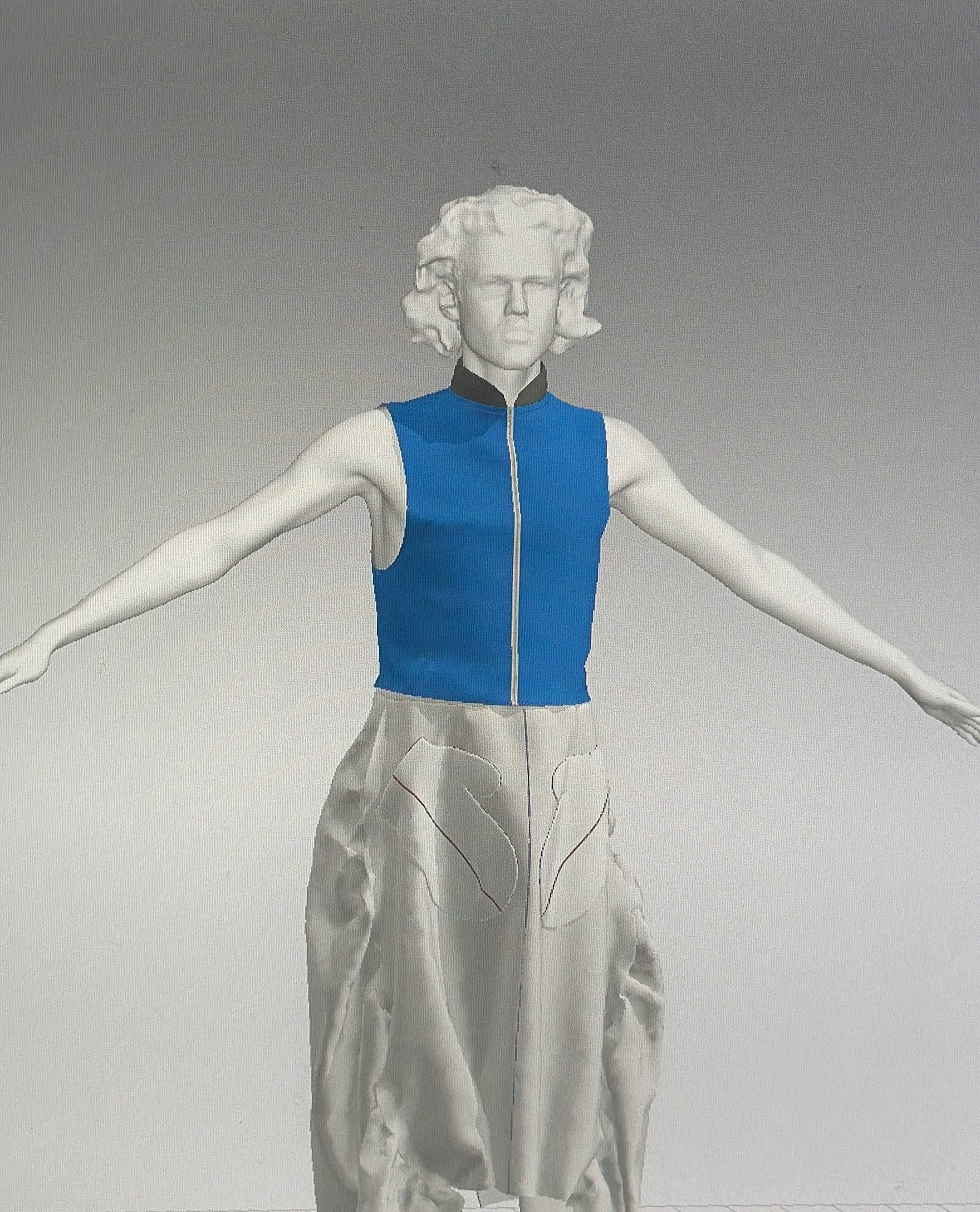 The workflow for this outfit started in Clo3D. Through experiments I landed on a silhouette that I like and wanted to continue with. I took a 3D scan of myself and uploeaded it into Clo as an Avatar. I drafted the pattern and baked them so I can texturise them later in Adobe Substance Painter.